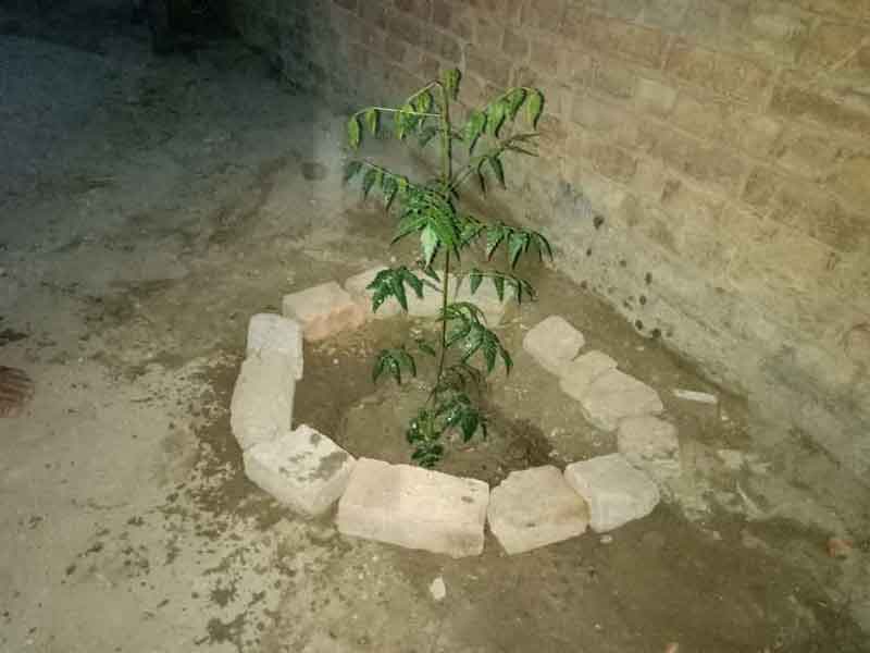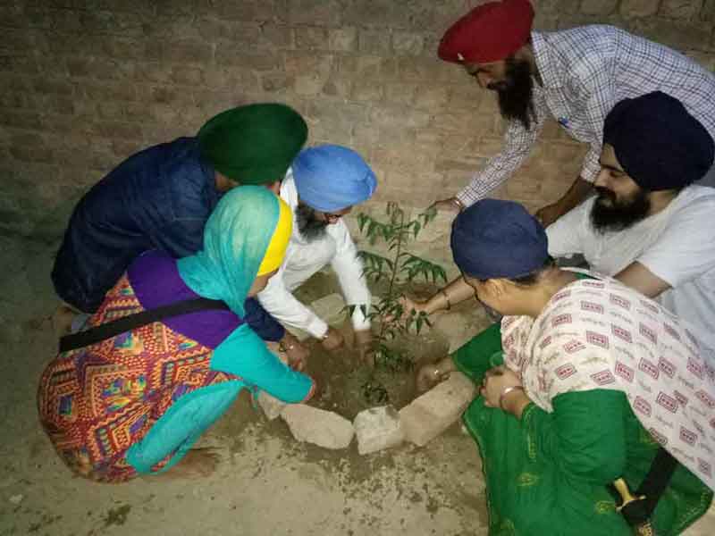 Team members assisting each other in Neem sapling plantation.